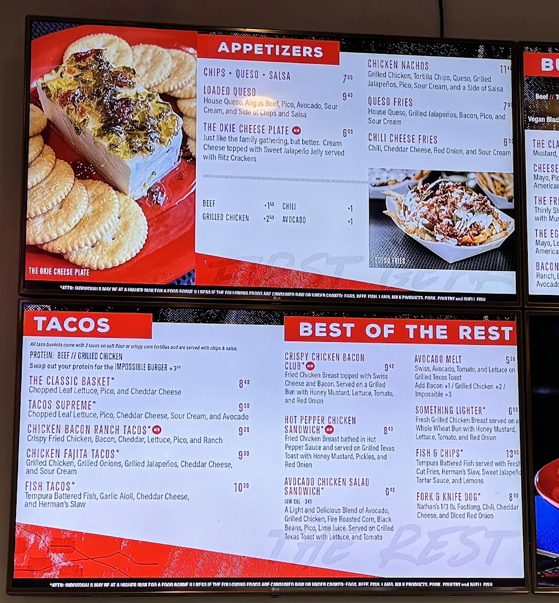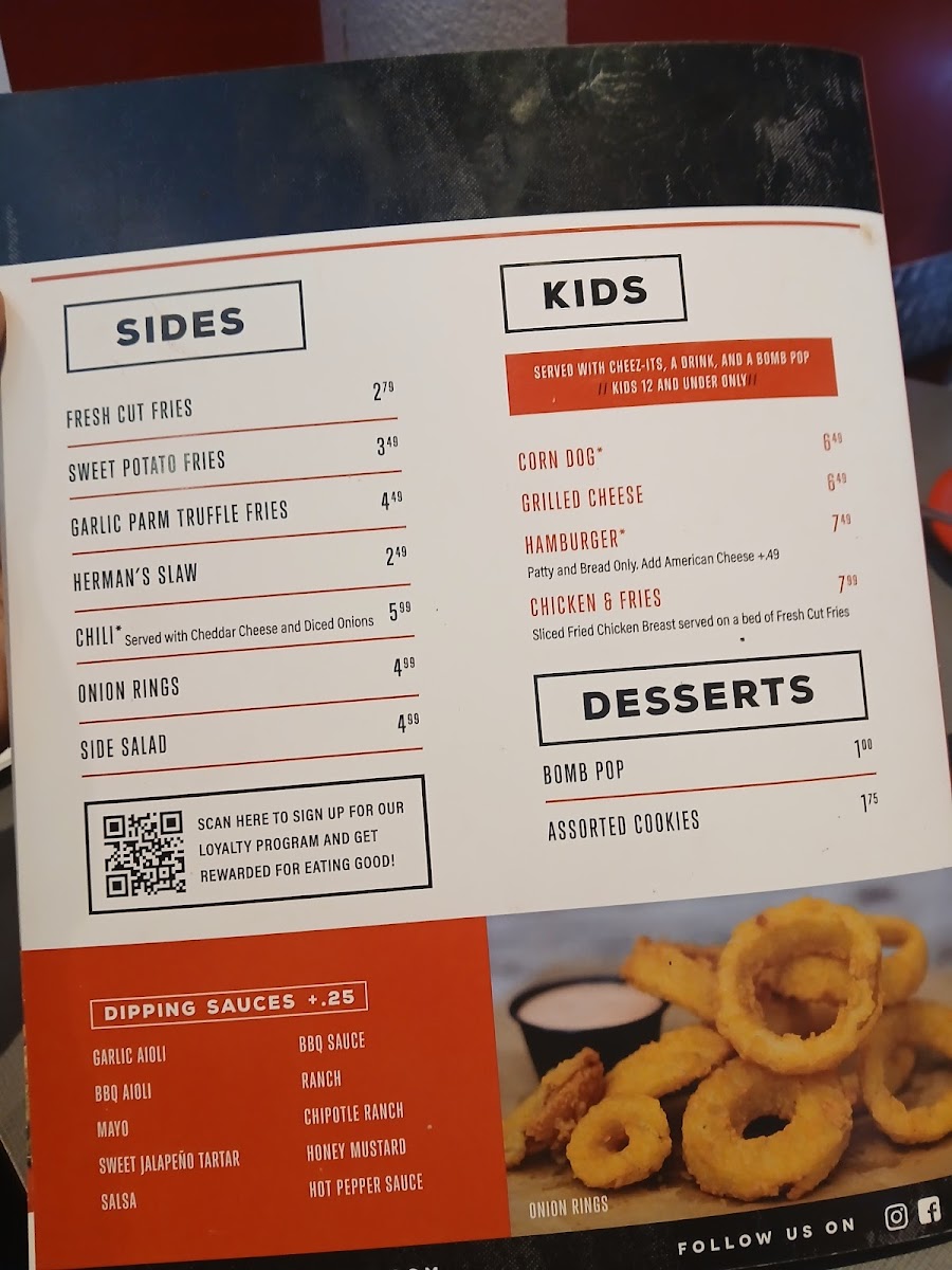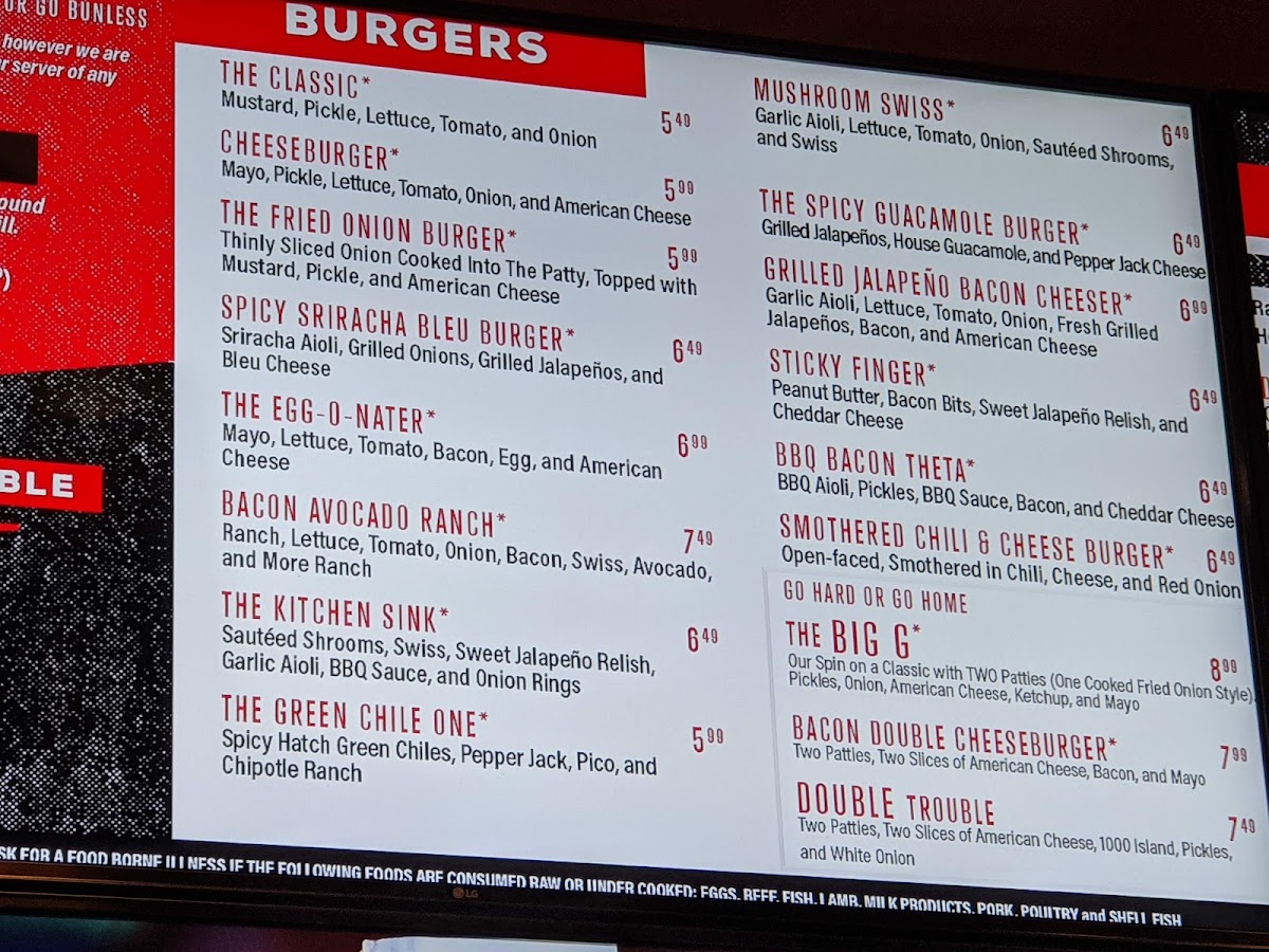 The menu features a variety of enticing options that cater to all taste buds. With burgers like the BBQ Bacon Theta loaded with BBQ aioli, and the Fried Onion Burger that comes with a unique twist, there's something for everyone. Don't miss the Loaded Queso as a savory appetizer, perfect for sharing.